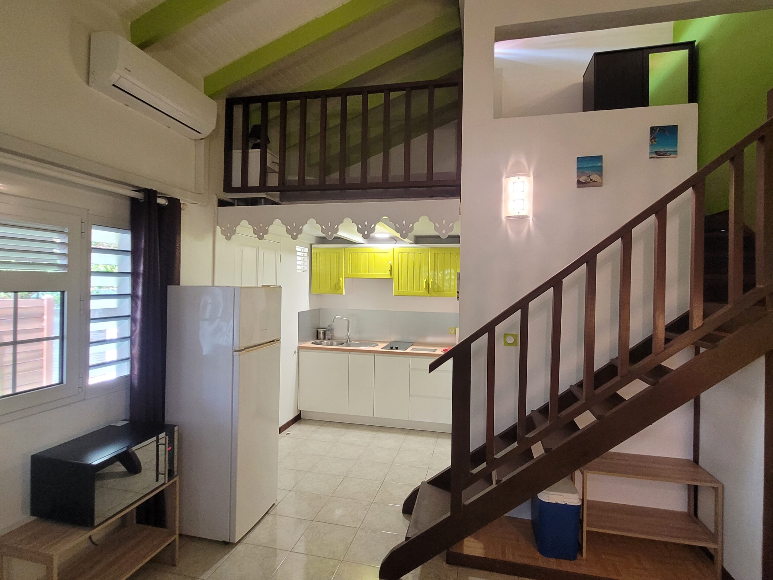 Ce meublé résidentiel climatisé se trouve dans un village de vacances et se compose d’une terrasse, d’un coin cuisine, d’un salon avec canapé-lit, d’une chambre en mezzanine et d’une salle d’eau avec WC. Prévu pour 4 personnes, le logement est bien équipé, vous y trouverez tout le nécessaire pour passer de très bonnes vacances.